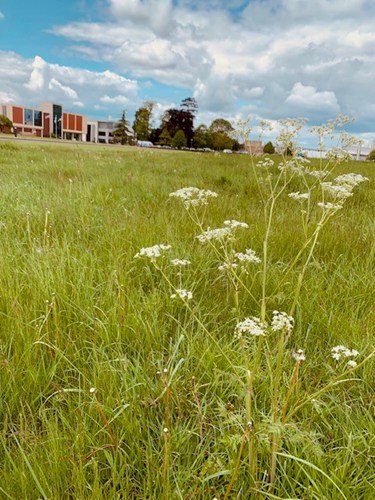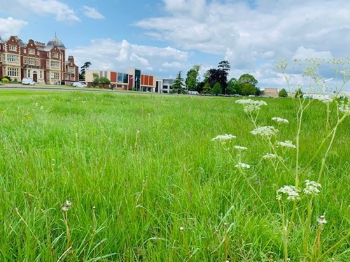 Our fabulous Estates and Gardening Team deeply care about the Campus environment and ecology, which they dutifully care for. They are also widely passionate about ecology and sustainability, so one of the initiatives they have introduced this year is to allow the grassland to grow long. This includes the grassland in front of the Hall but also other grassy areas throughout the site.